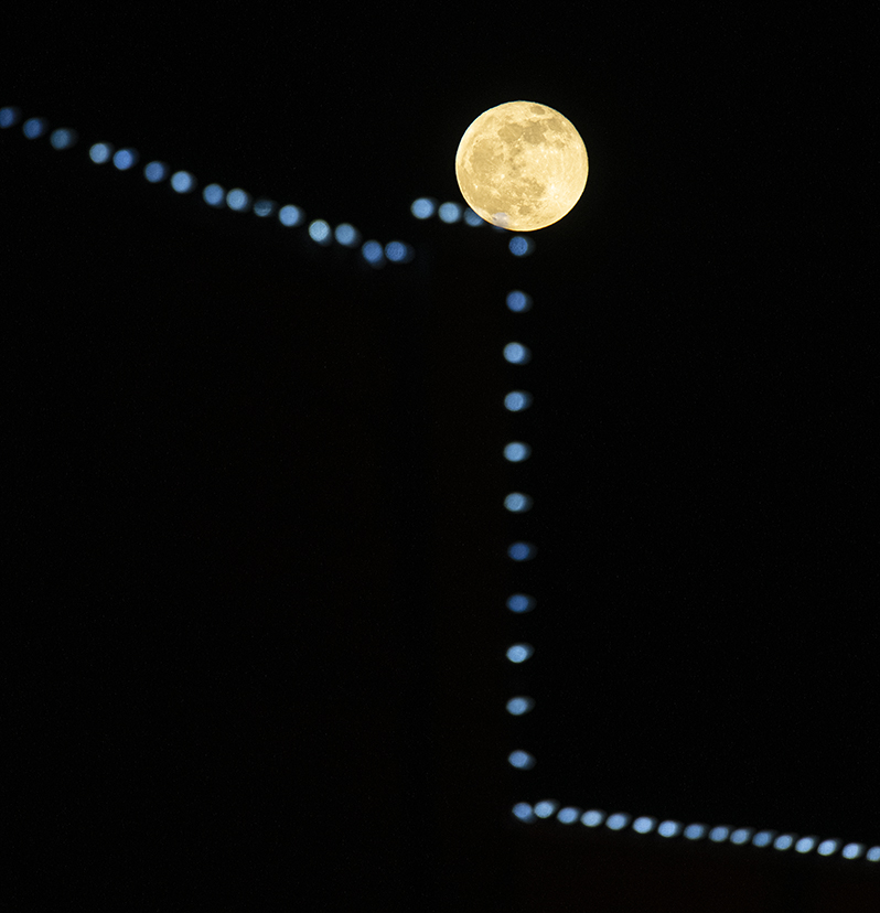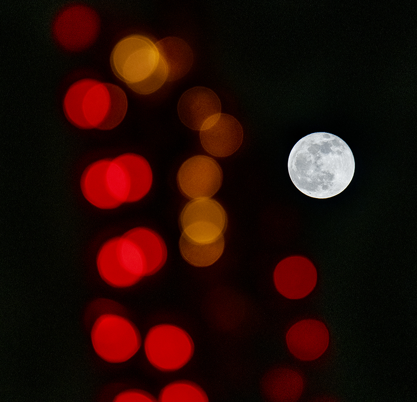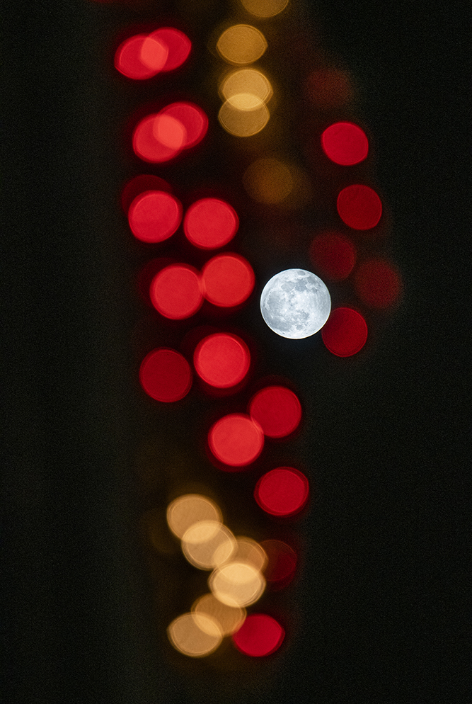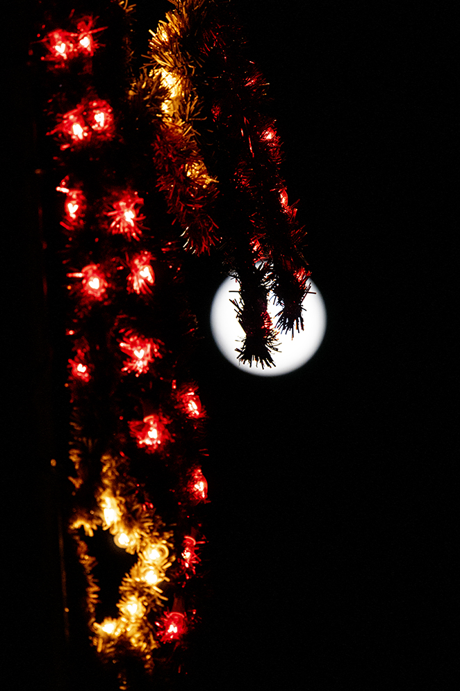 Some refer to the current full moon as the Beaver Moon, but for these photos taken tonight, I’m going with Holiday Moon, incorporating Christmas lights in Granger and Taylor. I’ll leave it there. More words would just get in the way.