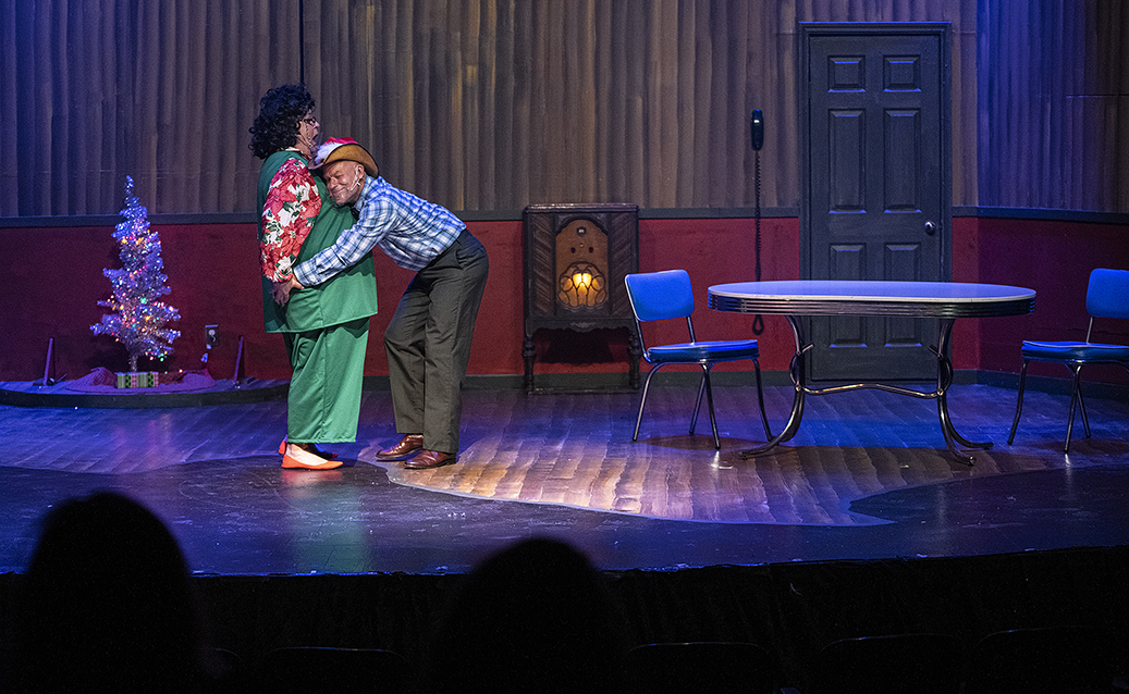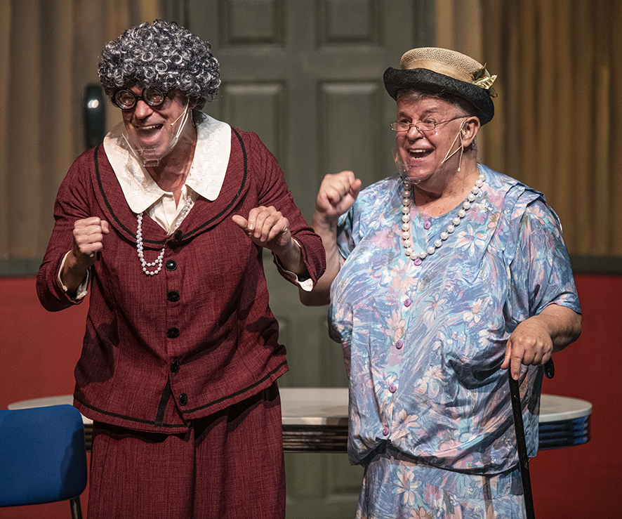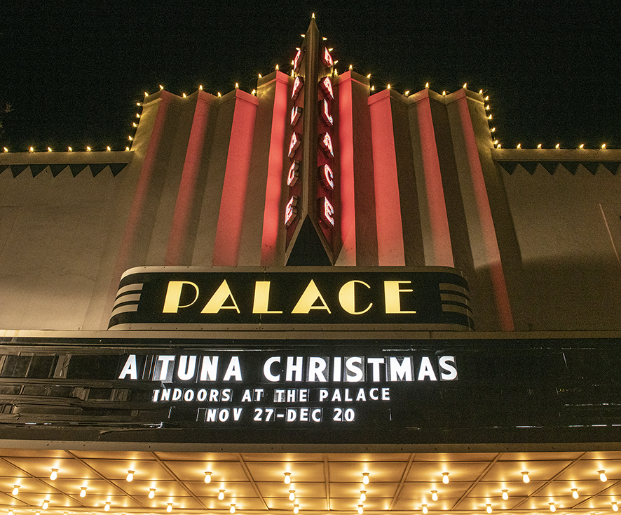 Except for a recent short visit, I haven’t been inside The Georgetown Palace since March, when the pandemic brought life to a standstill. Since the mid-70s I’ve been taking theater photos. It was nice to be inside for last night’s dress rehearsal of “A Tuna Christmas,” opening Friday night and continuing through December 20th. It stars only two actors, Kirk Kelso and Rick Felkins, but combined they play 20 roles in the almost two-hour production. Whew! Note that the theater is being very cautious for this undertaking. Except for those attending together, there will seats left open between attendees, only seating on every other row. Everyone is required to wear a face mask. There will be no concessions offered. I’m very happy to see this production. The community needs this.