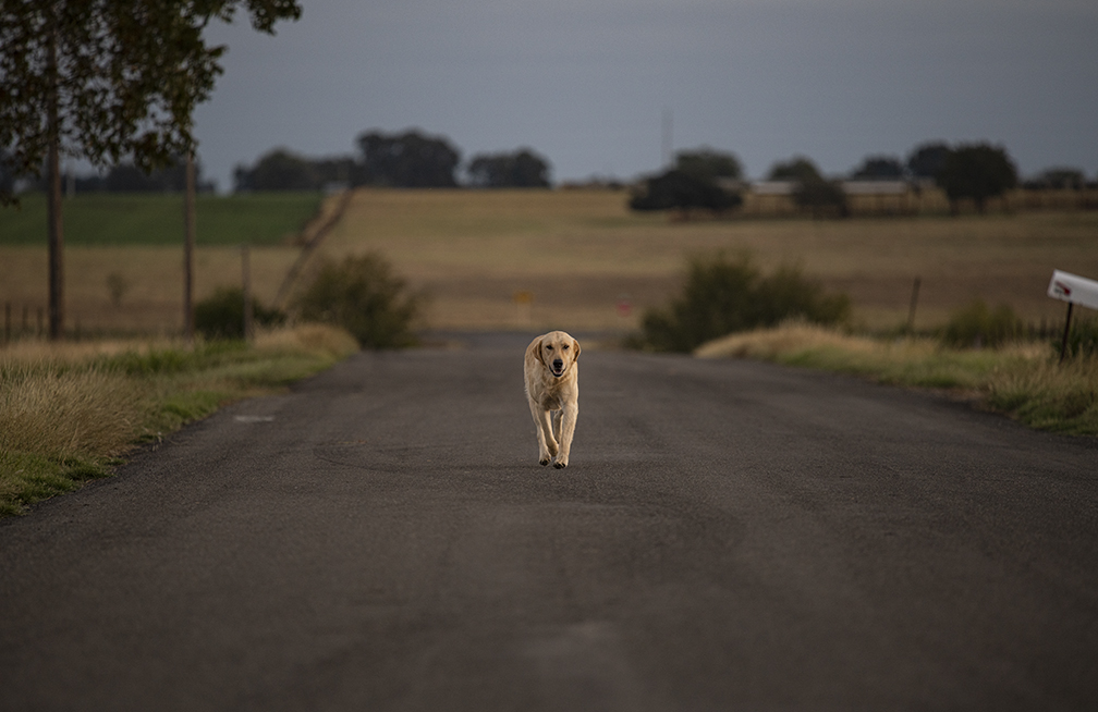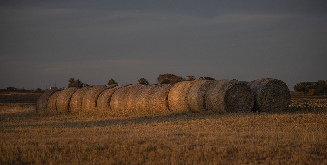 Things tend to stack up my computer’s desktop, slowing down the work flow if left untended. I’m trying to get better about that. Like tonight. Just four photos from recent Blackland Prairie outings. There’s a sweet field of swaying prairie grass absorbing the day’s last rays. And a friendly pooch, fearlessly strolling down the middle of a country road. I worry about that dog. Then there’s those bales of hay. Certain light enhances otherwise mundane subjects. The last photo is one that kind of sums up the feel of this area. There’s no focus … no barn, no windmill, no cow, no horse. Just land and sky. That’s quite enough.