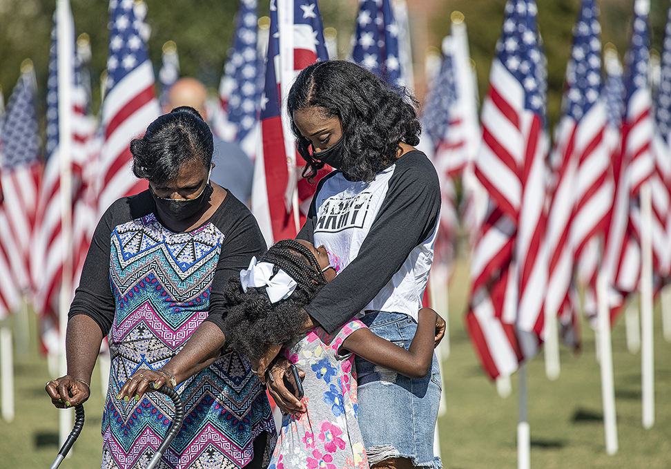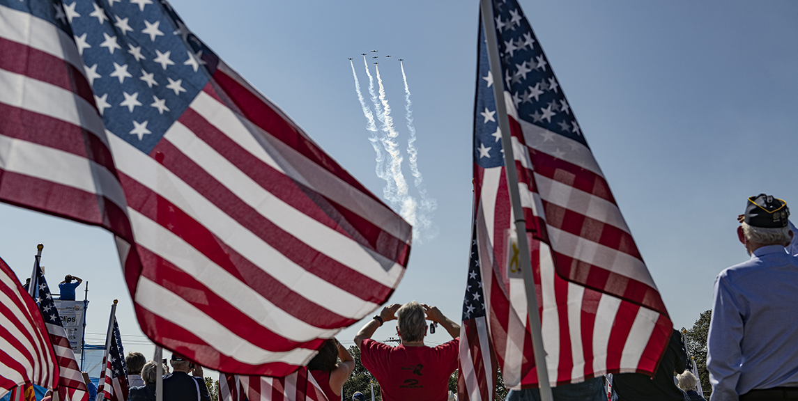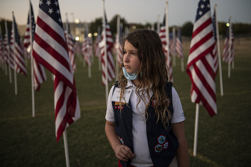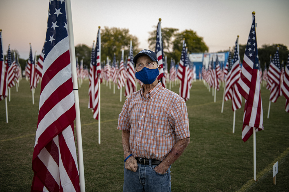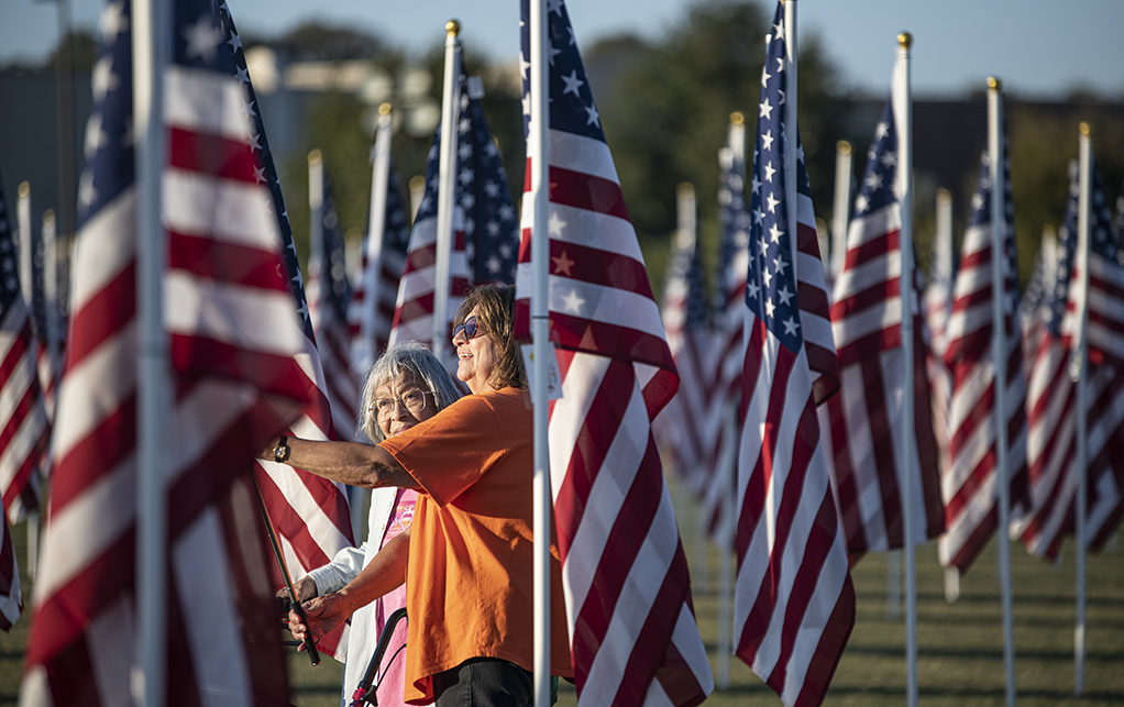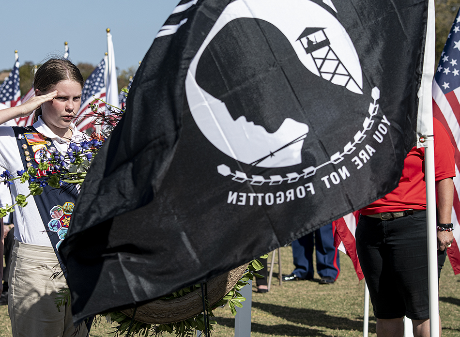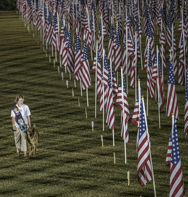 Today was the opening day for The Georgetown Rotary Club’s 4th Annual Field of Honor, at San Gabriel Park. A field at the park is adorned with approximately 1700 flags. They will fly through here through November 15th. I met a 93-year-old, her late husband a World War II Army veteran, walking among the flags with her daughter. They stopped briefly to take a photo with the help of a selfie stick. Georgetown’s American Heritage Girls Troop 1045 are docents for this year’s event, helping place tags on flags purchased to honor family members and friends. One of the girls strolled among the flags with her dog, Watson. It’s always good to see these flags.