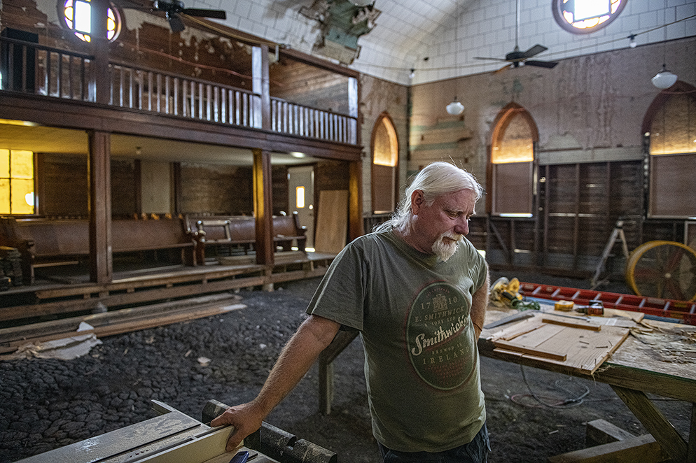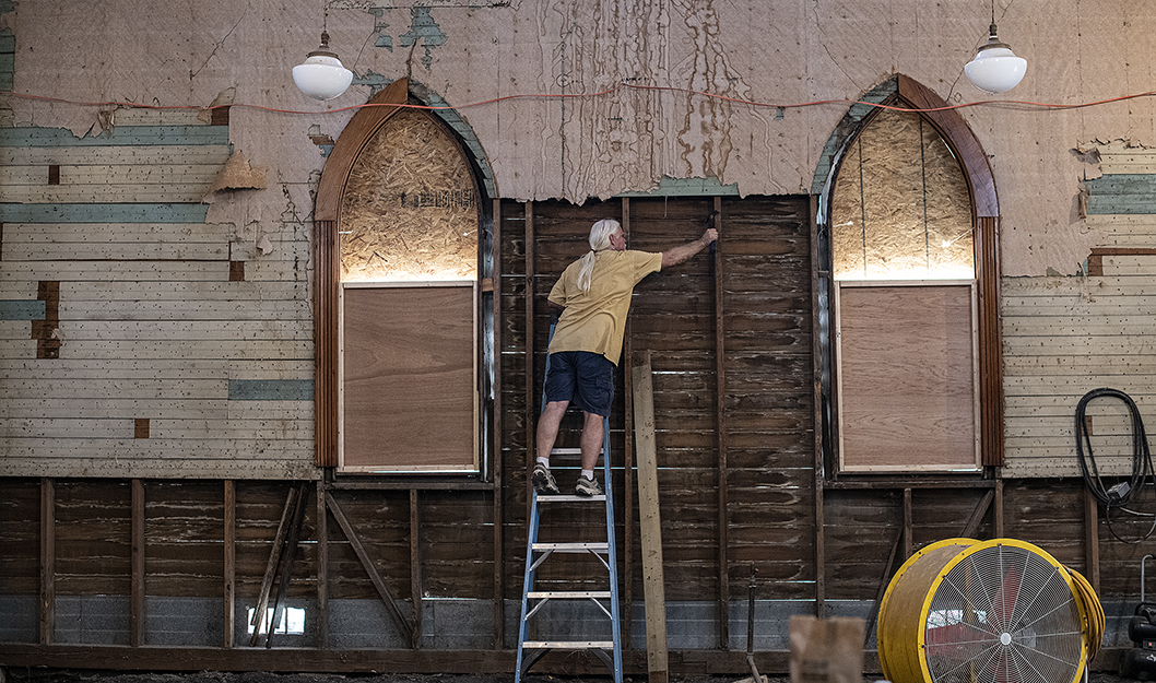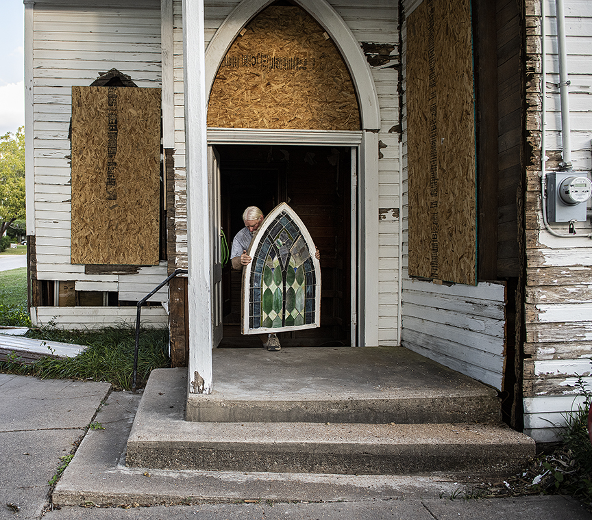 Those who follow these posts may recall one from last December, when Robert and JoAnn Halstrom began their work on the 1904 Granger First United Methodist Church. Earlier that year, the church closed its doors because of declining membership. The Halstroms, from Wimberly, purchased it in November. The work began. Along came the pandemic. For months, I saw no activity. The work now continues. Robert, a baggage handler for American Airlines, has taken a leave of absence to devote more time to the project. JoAnn, a rural postal carrier, helps when she can. Seventeen stained glass windows are being restored, the structure is being leveled. It will take time. When the work is finished, the Halstroms are leaving the church’s future open. It could become their home, or a community center, perhaps a restaurant. I’m just glad to see this thing go forward. Preservation is important.