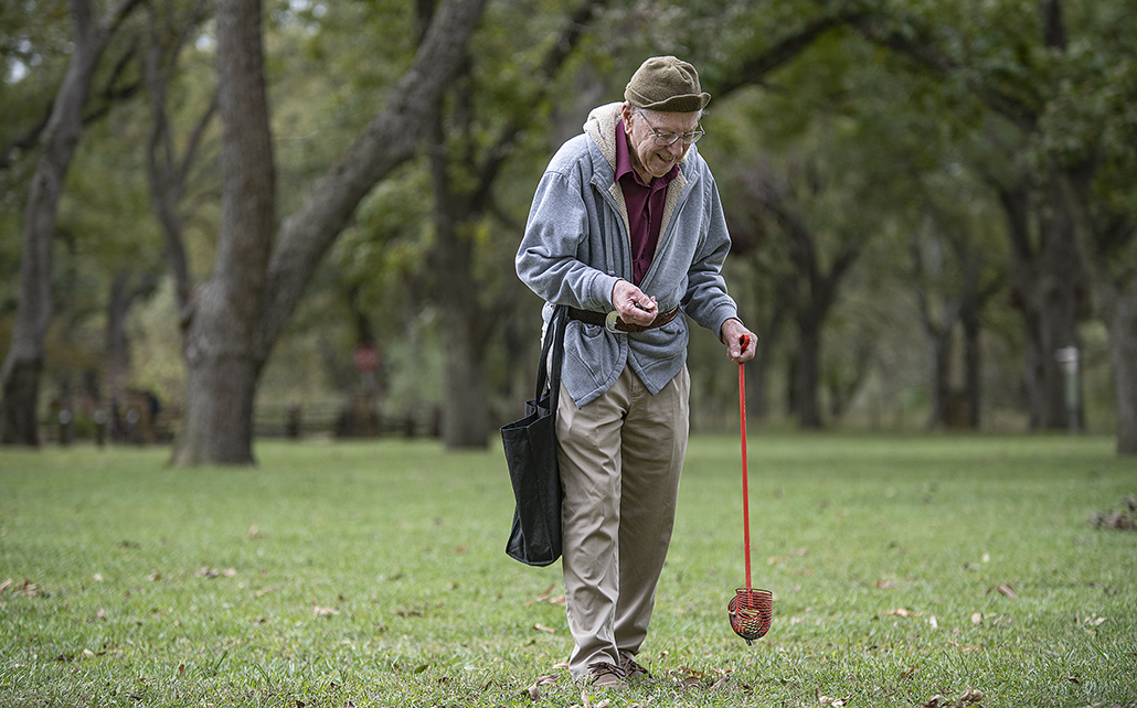 I spent some time at Georgetown’s Berry Springs Park & Preserve Saturday on a very cool Autumn day. Included are a few photos from that outing, including a mom and daughter snapping photos of Charlie (a girl), their beautiful 70-pound Golden Retriever. The daughter is very strong! And friends visiting with the park’s resident donkeys, Pedro and Lil’ Bob. But the best part of this day was a gift in the form of Claude, who was gathering pecans from the the park’s many trees. Claude, a World War II Army veteran, is 93, but points to January, when he’ll celebrate his 94th. Claude has the most infectious smile I’ve seen in a while, good enough to include two close portraits. His hearing is not what it used to be, but we had little trouble communicating. So far this year, he’s gathered 60 pounds of pecans! He shared that he lost his wife a few years ago, but has loving memories of meeting her in New Hampshire way back when. At that meeting, when she heard Claude talking to someone, she exclaimed “You’re from Texas!” Claude turned to the voice and was met with the most beautiful blue-eyed girl he’d ever seen. She was a Mississippi girl. They became lifelong soulmates in marriage. Meeting Claude was a treasure. I hope he gathers many more pecans.
