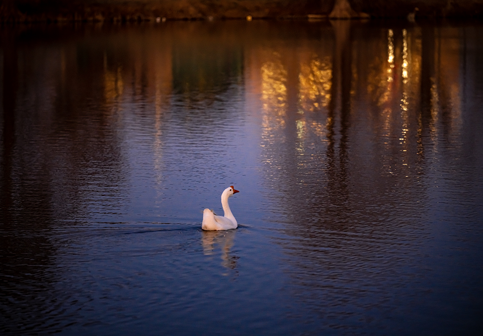 While initially focused on something else tonight, this goose making her way across the lake at Taylor’s Murphy Park merited a few moments. The light was the impetus. It usually is.