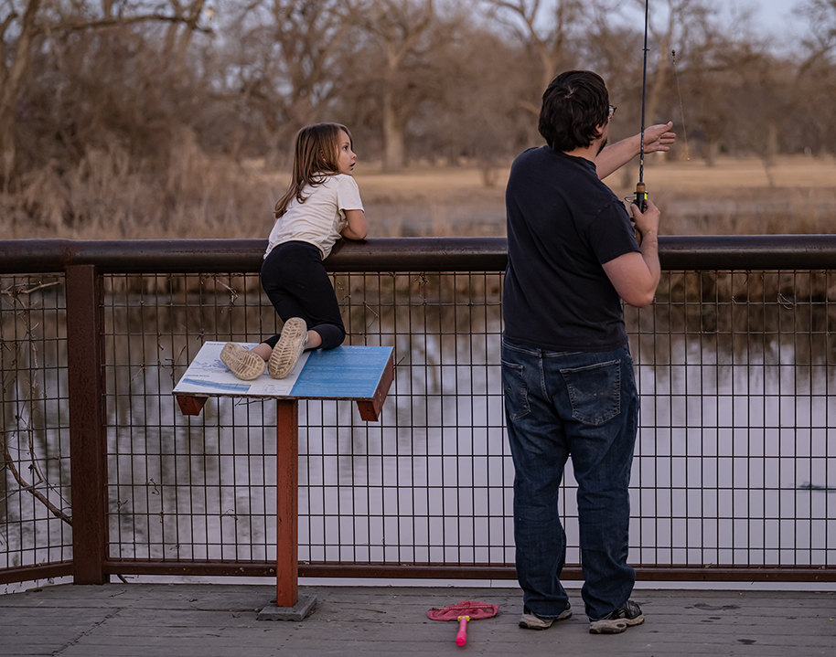Georgetown’s Berry Springs Park & Preserve is a go-to space for photographers, this one included. When moving back to Texas in 2009, discovering the abundant pecan trees was a definite plus. These days, it’s just nice to tote a couple of cameras and walk around the park, hoping to see deer, owls or a hawk. Nearing day’s end Thursday, a Great Blue Heron found the space in a tree to her liking. Nearby, however, was a little bit of community journalism taking place, a dad his daughter enjoying their time together in a quiet cove near the pond. They were practicing catch and release, the young lady doing a good job of returning the fish to their habitat. We all decided to go since the light was fading quickly. Dad and daughter, holding hands, heading for home. As did the photographer. Just stuff, friends.