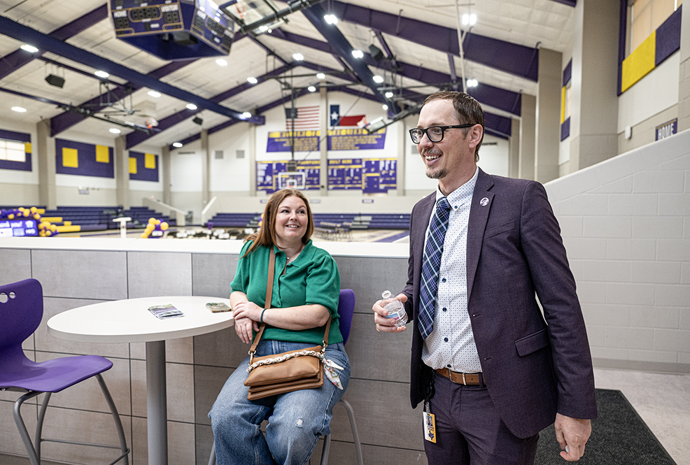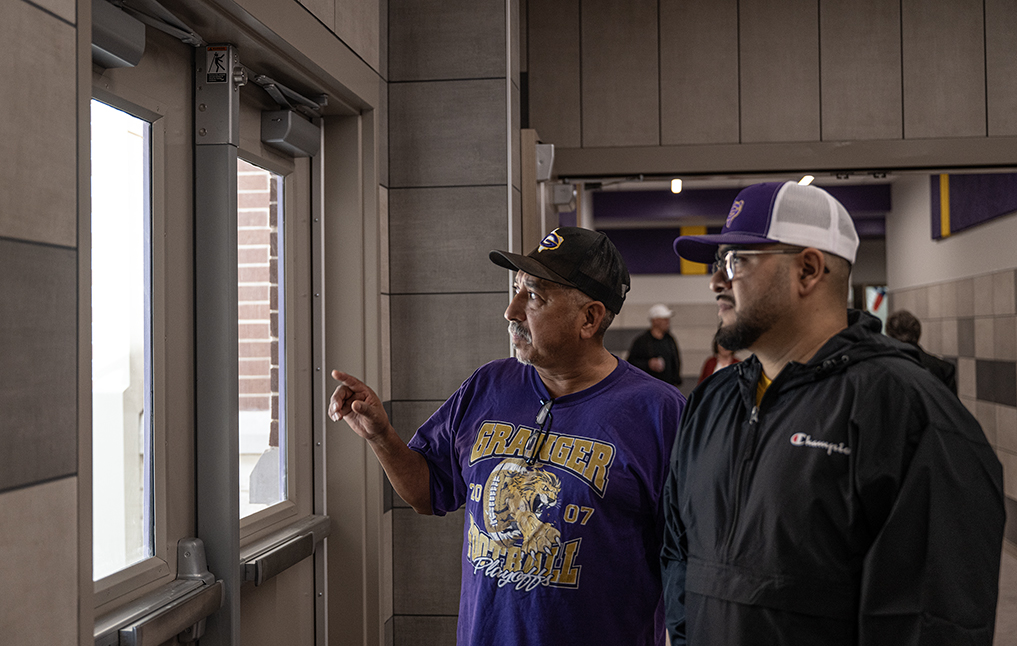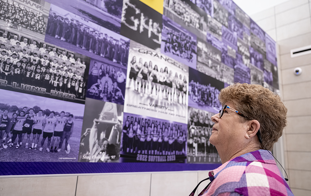 Granger Independent School District held an open house today for their Granger Secondary School, designed for students in grades 7-12. The new school opens to students and staff on Monday, March 2nd. Although the building was essentially completed months ago, there were issues getting water to the site. Now things are good to go. The opening photograph is a night shot taken on Sunday. Note the face of the lion looking right into the camera. A lion is the Granger school mascot. That face is so doggone cool. The rest of the photos are from the open house today. This is a very local post, but worth offering here.