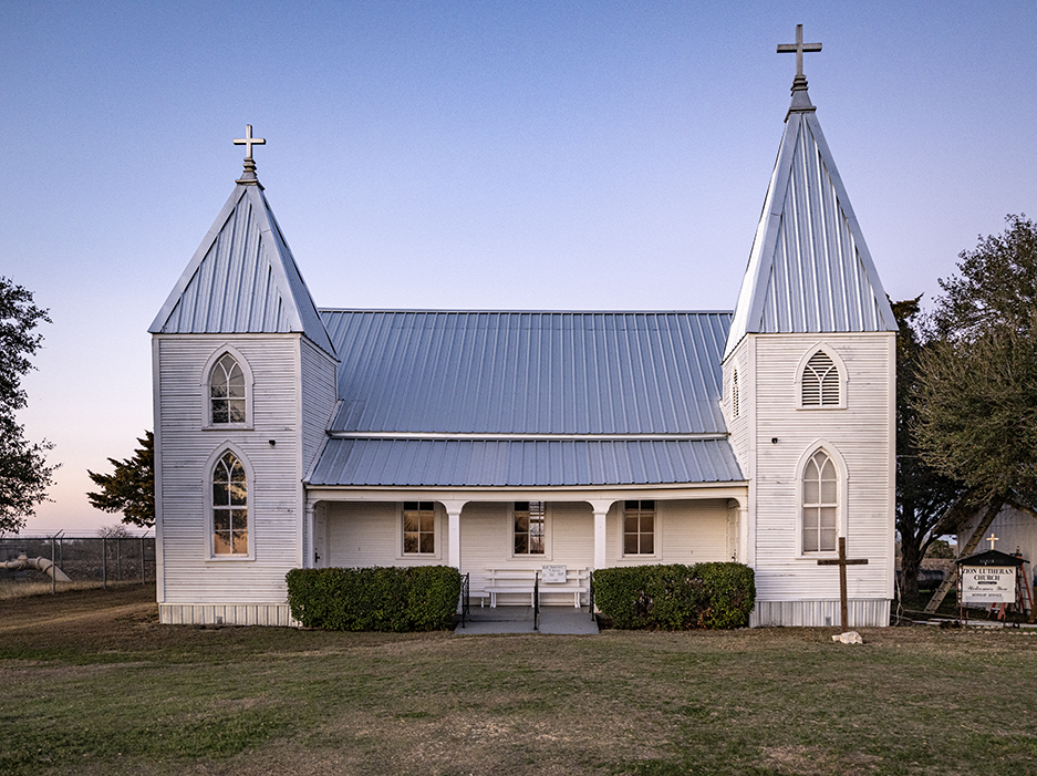 It’s been a while since a visit to Zion Lutheran Church in Sandoval, Texas. These were taken there tonight. The church is at the eastern edge of Williamson County, a few miles north of Thrall. The church was formed in 1893 by settlers from Germany, Austria and Sweden. The structure offered here opened in 1932. The adjacent cemetery was here long before that, the first burial in 1897. Most visits are exterior photos, but a nice young man doing some work there this evening welcomed a visit inside. The last time in the sanctuary was a few years ago, during a warmer month when more flyswatters graced the pews. There was just one there tonight. The sanctuary light is inspiring.