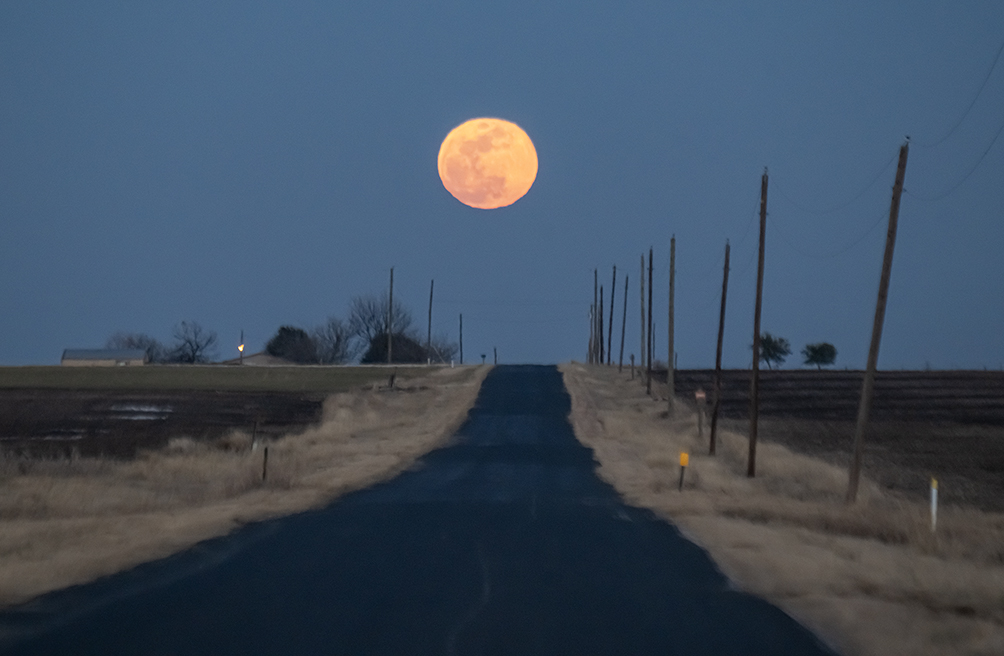 While doing other photographs Saturday and today, taking the time to document our moon was a worthwhile endeavor. The first three photos were taken this evening. Included is a nice country road with the just-rising full moon hovering above. followed by the cemetery at Prince of Peace Lutheran Church in Wuthrich Hill, plus a full night photo of Taylor’s First United Methodist Church. The barn photo was early this morning, when the full moon was getting ready to set, just after 7a.m. The last two were taken Saturday evening when the moon was not quite full, but almost. The tree is in Jonah. The cormorant, of course, is at Taylor’s Murphy Park. Probably too much stuff, but the moon is a fascinating subject, always has been!