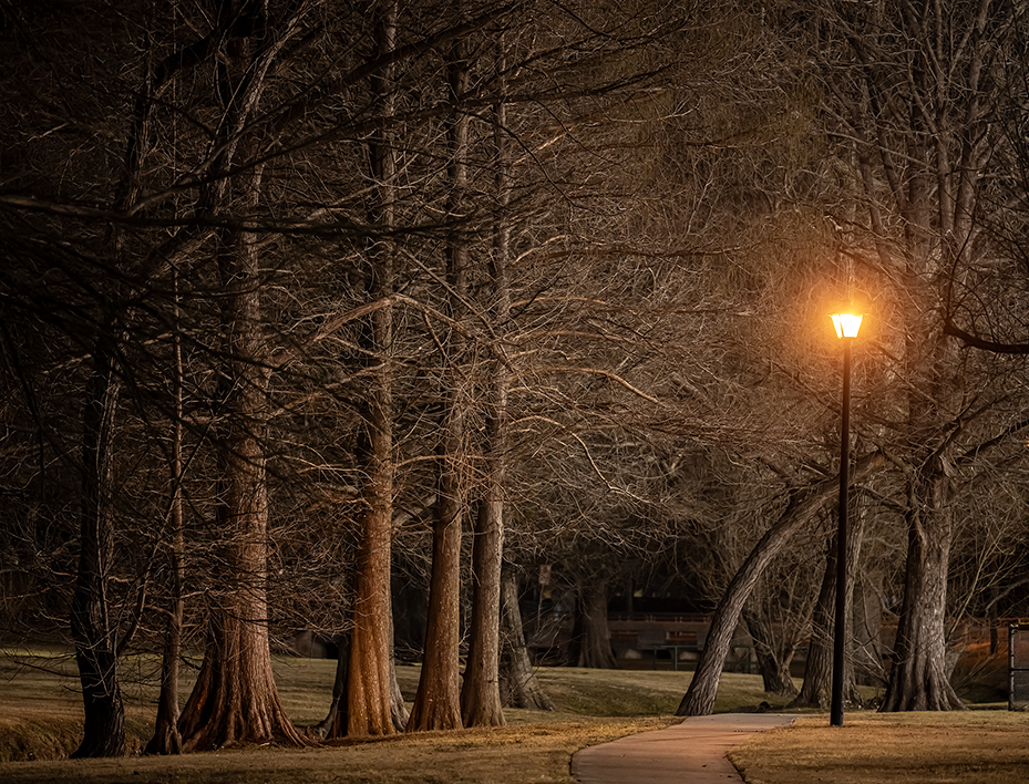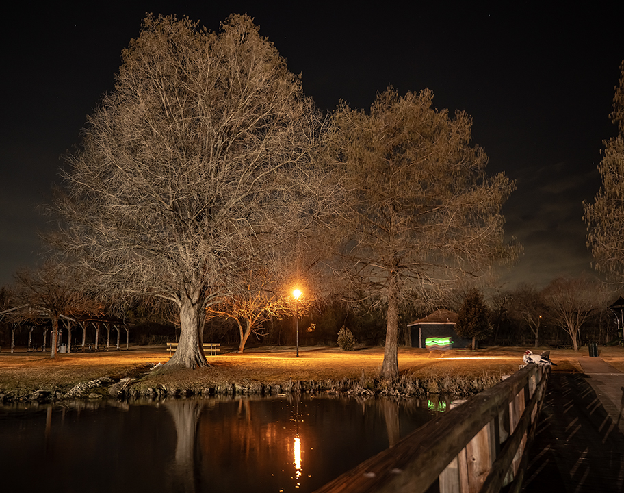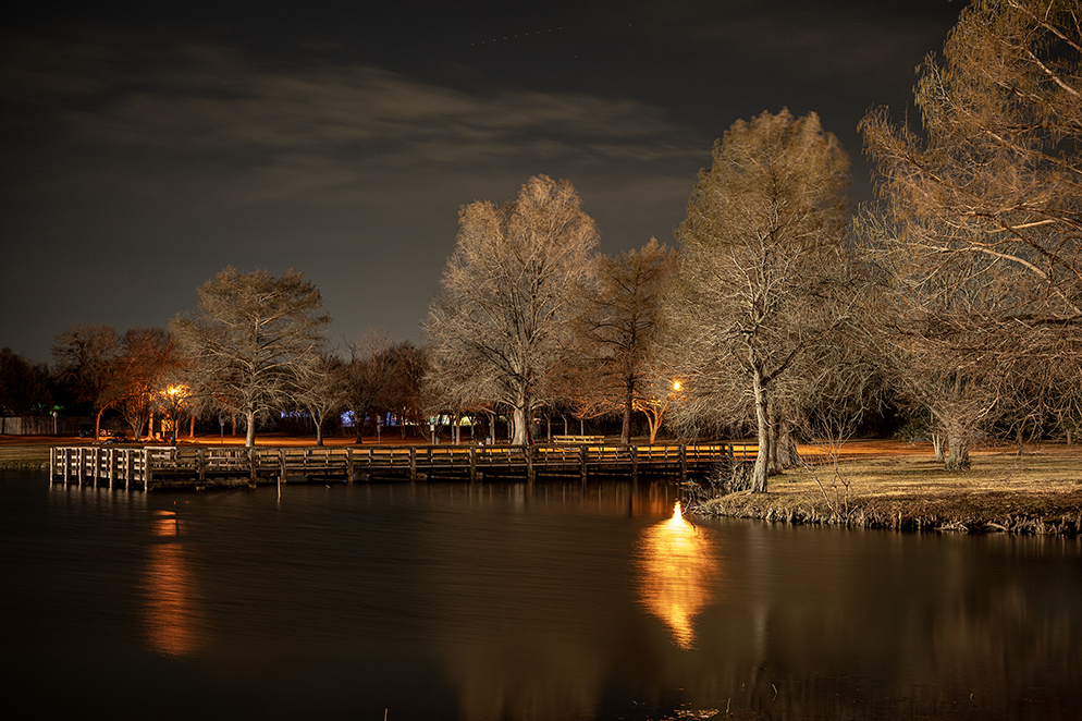 Photos from Tuesday night taken at Taylor’s Bull Branch Park. A handy tripod allowed for some interesting evening photos, enhanced by warm street lights throughout the park, plus nearby baseball fields adding to the mix. The last photo in this set is a 13-second exposure at f/5.6, an ISO setting of 200. Tripods don’t solve every issue, but they do come in handy. Just an old guy moseying around the dark, friends.