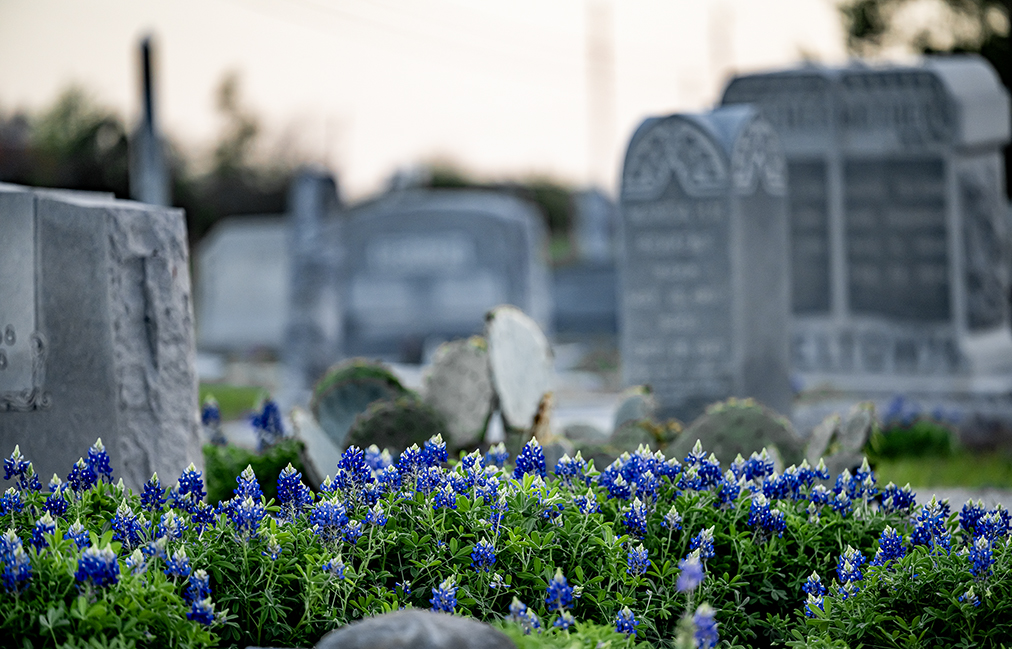 Through the years the most abundant collection of Texas Bluebonnets have been in cemeteries. Offered here are recent photographs taken at St. Peter Lutheran Church Cemetery in Walburg. Even without the wildflowers, the cemetery itself is quite beautiful. Burials began here in the mid-late 1800s. Walk among the burial sites, notice the stones, many with inscriptions s in German. If you visit during bluebonnet season, step lightly. Some are still growing.