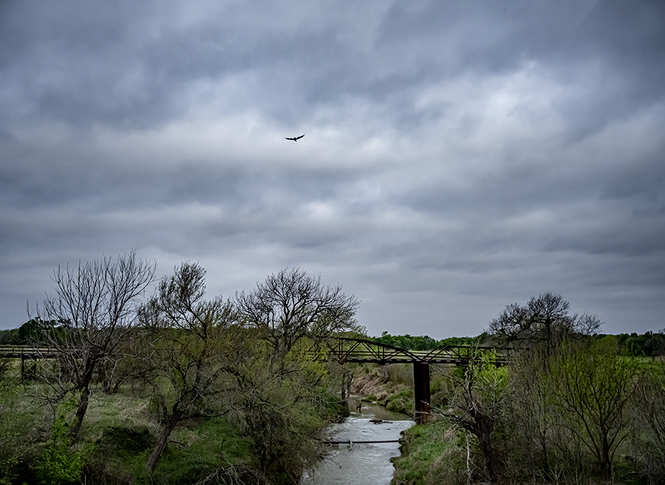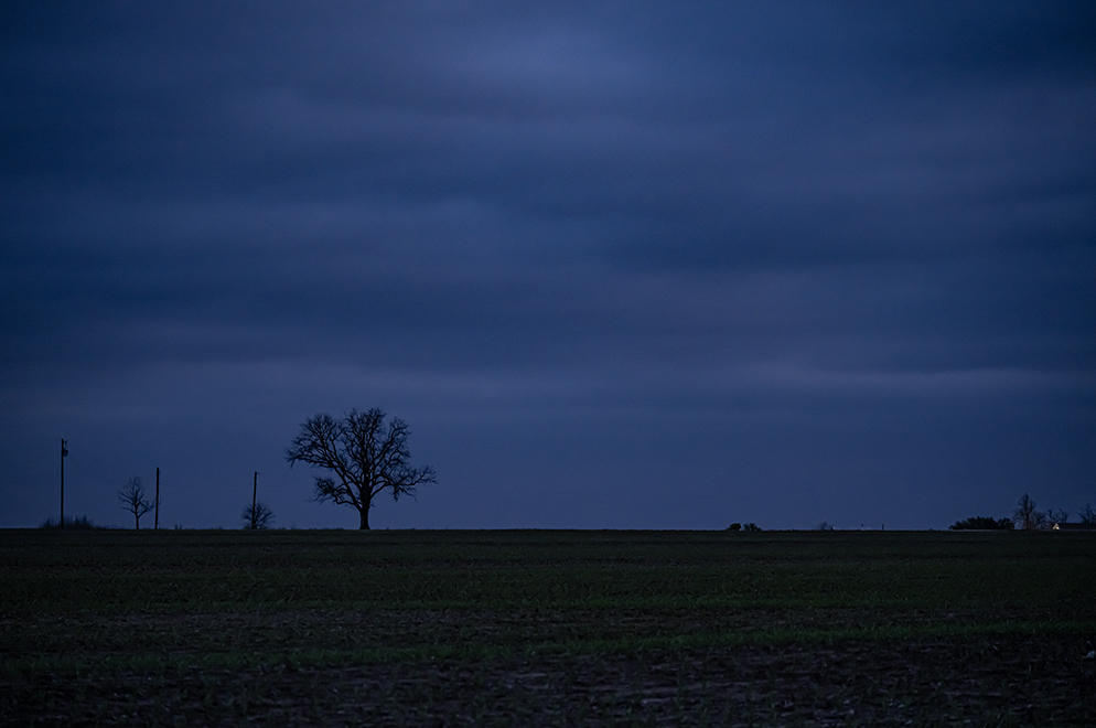 It was a morning to get outside well before sunrise, but clouds made sunrise photographs problematic. On the move quite early, few things made an impression except for a lone tree in Beyersville, about 25 minutes before dawn. The soft blue morning light embraced the tree’s branches. Until recently a farmhouse sat next to the tree, now gone. As dawn neared, a photo over Brushy Creek, accompanied by a long-retired truss bridge. If the sun were to shine, it would’ve made an appearance over Christ Lutheran Church in Noack. We settled for clouds this time. Sunrises are nice, but the first light of dawn is okay, too.