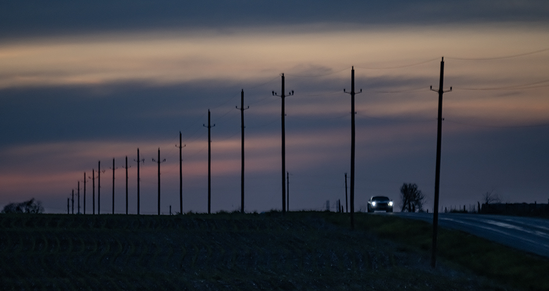 Country roads around here are always nice, but when our skies work their magic overhead they’e even nicer. Four photographs tonight. The opening shot was from this evening, others from Monday night. The light was fading quickly on the one from tonight, but it just made it more interesting. That stretch of road truly did take on a blue cast in those minutes past sunset.