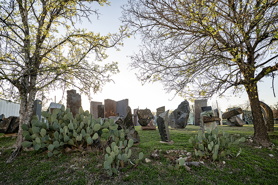 Meandering around the area after moving back to Texas in 2009, a short drive south to Coupland led to the discovery of a wonderful collection of sculptures, thus an introduction to the work of artist Jim Huntington. Through the years Jim has created beautiful sculptures cast in metal and stone. Periodically a visit to his sculpture garden at the Huntington Sculpture Foundation is in order. Light adorns these massive works, a photographer’s inspiration. There’s no good way to convey their majesty. Now 85, Jim is slowing down. The massive pieces are there, but now he focuses on pen and ink drawing, less cumbersome.