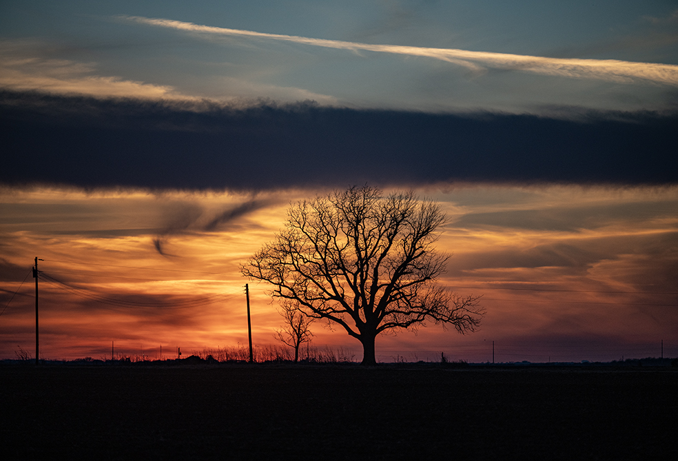 it’s a farmhouse admired for a long time. It rests on a beautiful piece of land just outside Taylor. Area friends probably know its history. It’s vacant now, with a No Trespassing sign on a tree out front. These were taken last night as sunset neared. Hopefully this beautiful structure will remain intact. It would be sad to see it gone. The barn is an added element. The grain elevators in the distance are owned by friends.