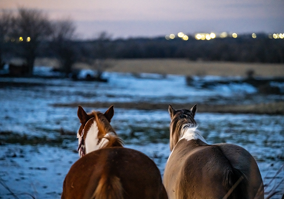 A set of photographs taken this evening near Taylor, Texas. Ice storm remnants hold on for a little longer. Frigid temperatures continue through the week, but thankfully, with less chance for the treacherous stuff. Horses and cows, friends.