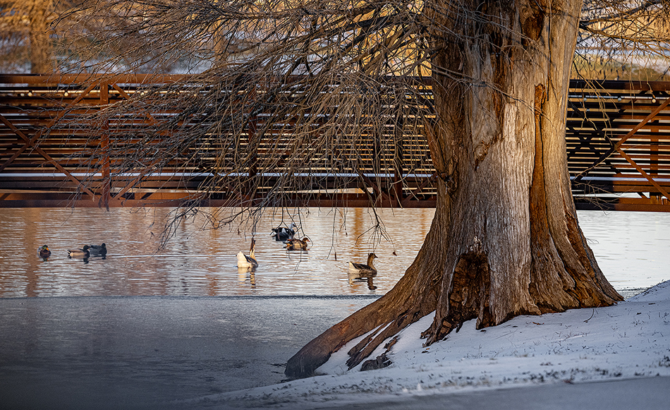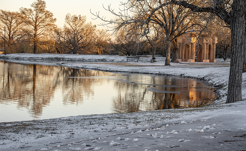 These photographs were taken late this afternoon in areas around Granger and Taylor. Be advised, friends, that is not snow you’re seeing, but very hard ice. The first several are from fields and farms south of Granger, the last three from Taylor’s Murphy Park. Driving conditions have been awful here, but not taking photos is pesky, too! Temperatures once again dip into the low-mid teens tonight. It’s a cold week.